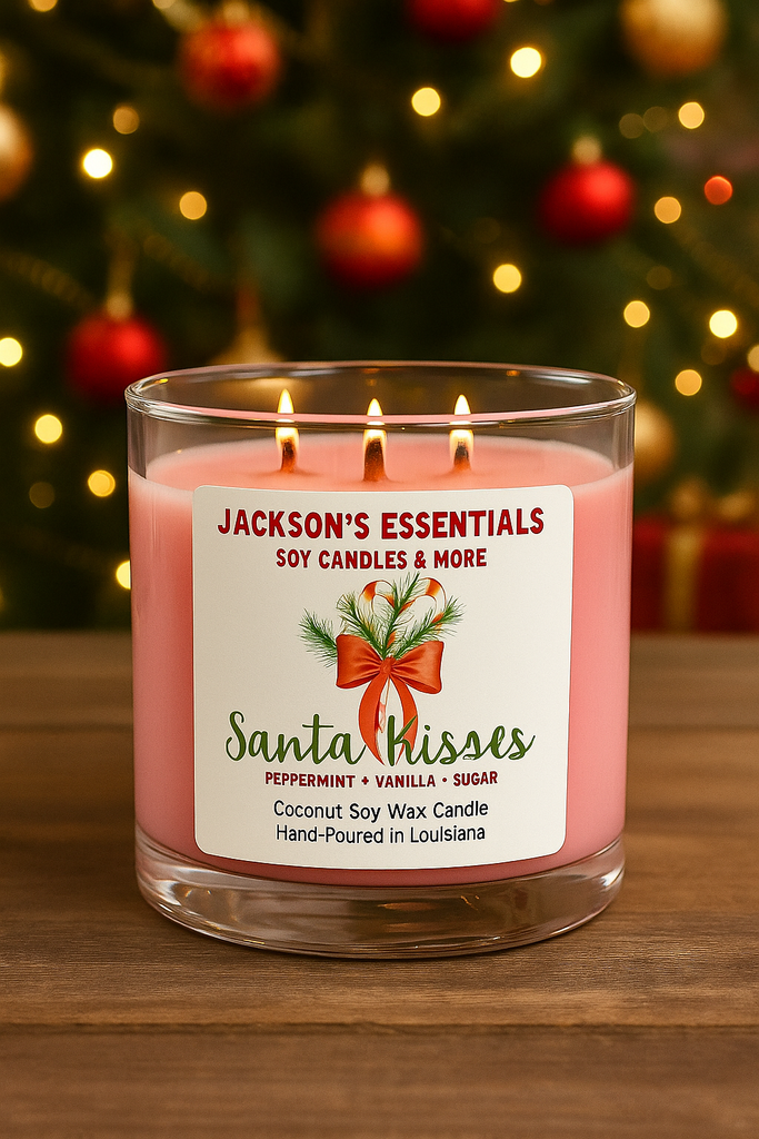 Our Santa Kisses fragrance is a captivating and festive fragrance that encapsulates the joyous spirit of the holiday season. This delightful candle combines the refreshing aroma of peppermint with a unique twist, creating a scent that is both invigorating and enchanting